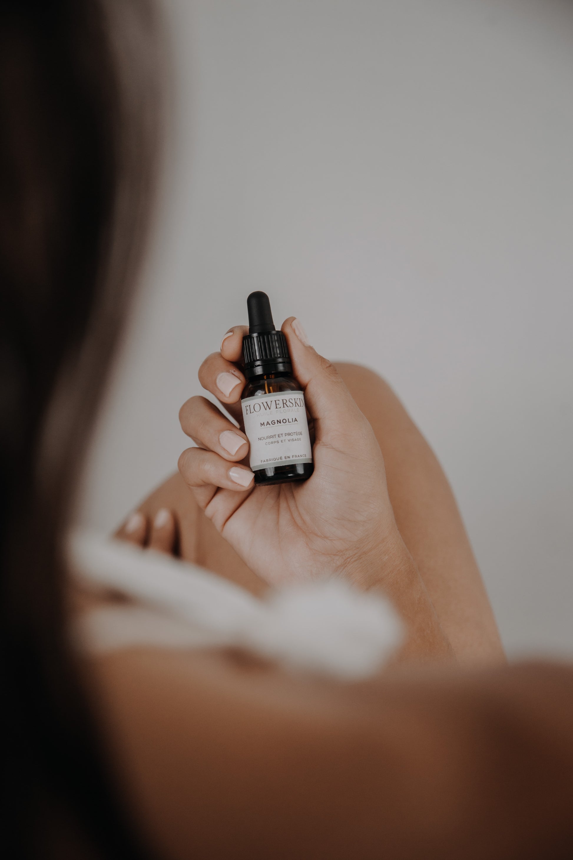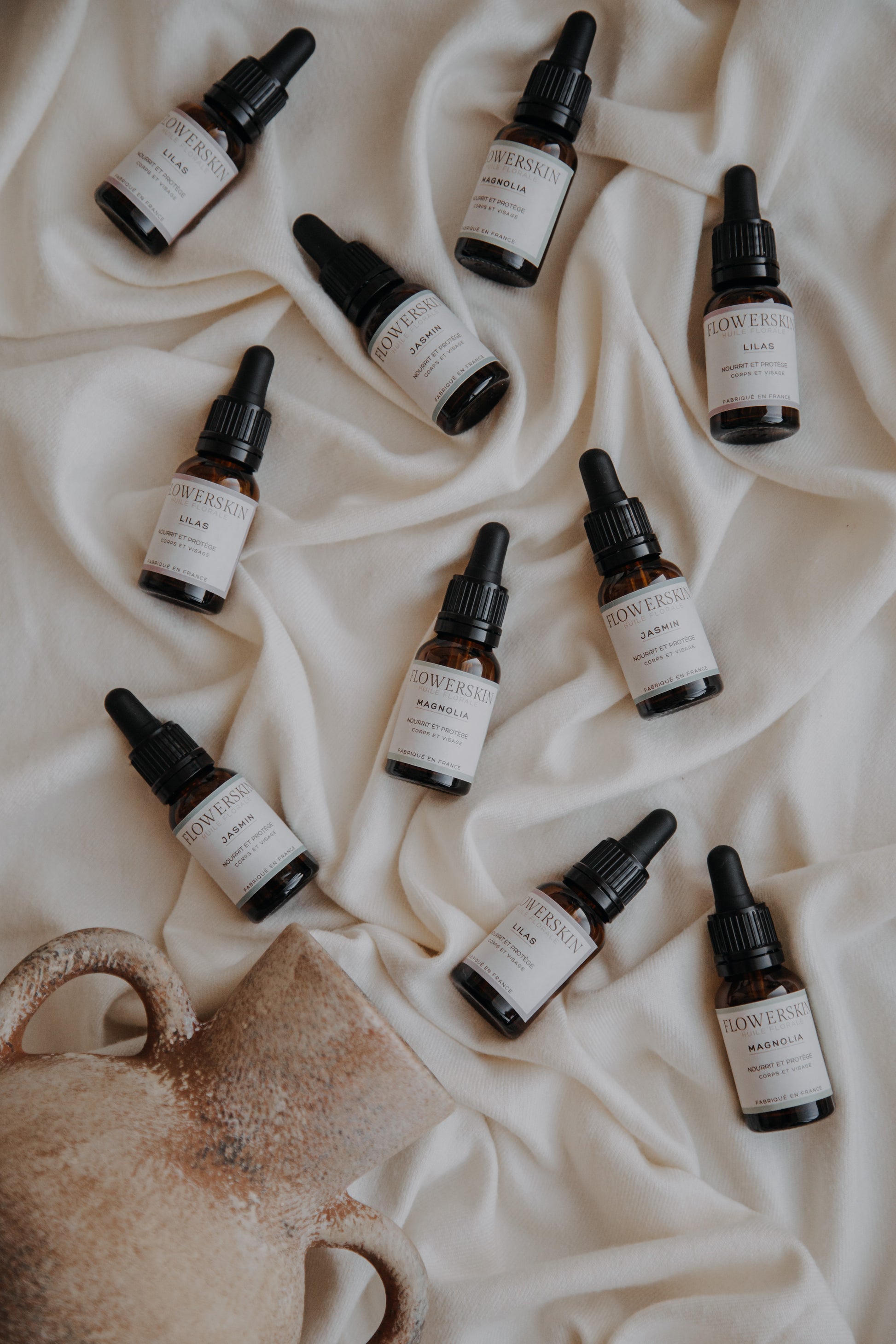 Lot de 60 huiles florales naturelles, fabriquées en France • Flacon 15 ml • Composition du lot : 20 Lilas • 20 Jasmin • 20 Magnolia (parts égales)